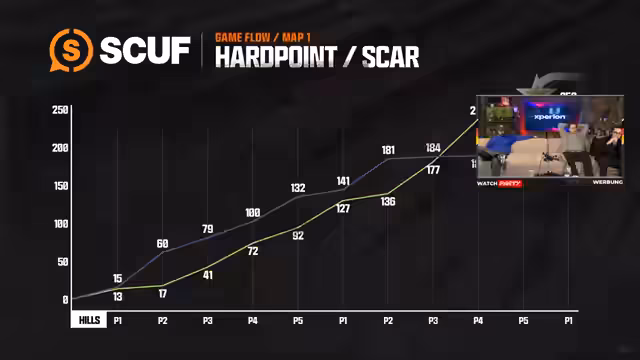 04:52:23Vor dem Start der zweiten Spielhälfte erklärt der Streamer die Regeln des anstehenden Uplink-Modus. Dabei werden die Besonderheiten wie die Anzeige des Trägers der Batterie durch Radar-Pings und die Taktik des sogenannten 'Park-to-Bus' ausführlich erläutert. Nach der Halbzeitpause und der Vorstellung des Sponsors SCUF wird der Fokus auf die bevorstehende Map, Search and Destroy, und die diesbezüglichen Stärken der beiden Mannschaften gelegt, wobei die Kommentatoren ein 3-2 für FaZe vorhersagen.
