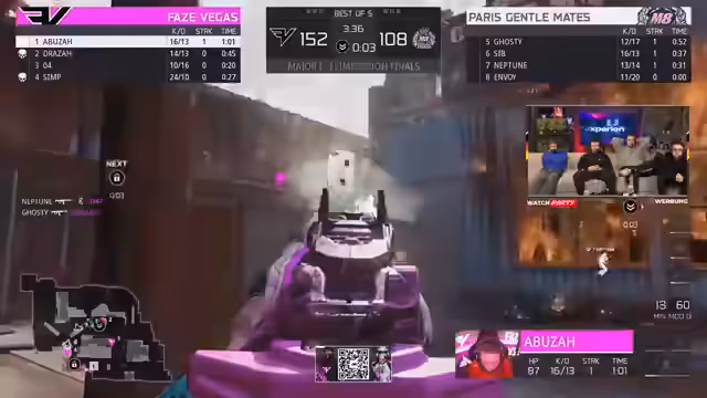 05:30:20Das S&D-Match entwickelt sich zu einemHighlight des Turniers. FaZe übernimmt die Führung, doch Gentlemates kämpfen sich zurück. Besonders die Aktionen von Spieler Neptune mit einer beeindruckenden Neun-Serien-Streak und dem anschließenden Sieg in einem 1v3-Situation werden als 'Masterclass' bewundert. Parallel dazu kündigt der Streamer an, künftig mit dem Kollegen Jam gemeinsam eine Watch-Party zu veranstalten, um das Konkurrenzverhältnis zu beleben.
