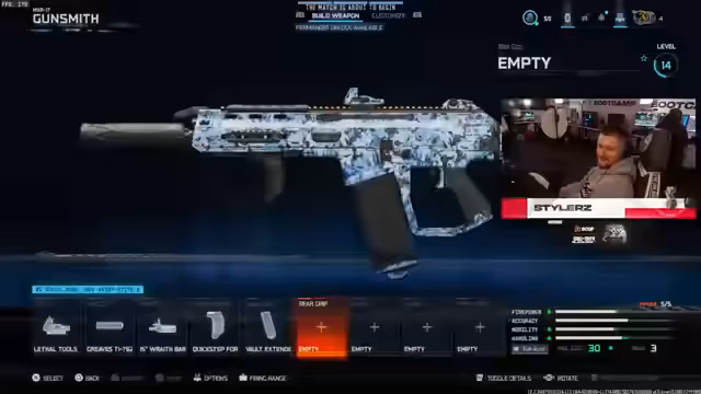 02:56:17Der Streamer äußert sich über das Gameplay mit Maus und Tastatur, stellt fest, dass der Durchschnittsspieler besser geworden ist, aber auch viele schlechte Spieler in den Lobbys vorhanden sind. Er kritisiert das Matchmaking, das teilweise unfaire Lobbys erstellt. Bei den Waffen erwähnt er spezielle Camos und Prestige-Optionen, die er freischalten möchte.