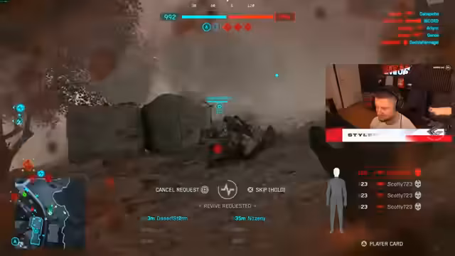 04:24:48Der Streamer und sein Team kämpfen heftig um eine Flagge (A), werden jedoch von vielen Gegnern überrennt. Es herrscht totales Chaos, mehrere Teammitglieder werden getötet, während der Streamer versucht, durchzuflanken und Absicherung zu leisten. Die Gegner nutzen die Umgebung optimal aus und sitzen in Fenstern und auf Dächern, was die Einnahme der Position extrem erschwert. Die Runde ist geprägt von schnellen Toden, reviven und erneuten Angriffen unter ständigem Beschuss.