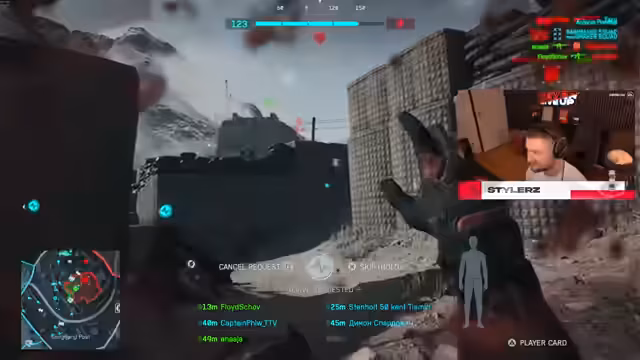 03:12:03Nach einem gewonnenen Runde beantwortet der Streamer Chat-Nachrichten wie 'Easy' und 'Wrong Team'. Es folgt eine intensive Diskussion über den großen Bug, der viele Spieler am Start der EA-App hindert. Als mögliche Lösung wird empfohlen, das Spiel direkt über Steam zu kaufen, da es dort funktioniert. Zum Abschluss gibt es noch einige Kämpfe mit einem Heli und einem Auto, während die Absurdität von Fahrzeugen in Battlefield kommentiert wird.