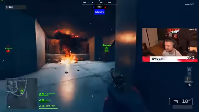 02:57:17Das Gameplay ist sehr intensiv und der Streamer wird oft überraschend von Gegnern getötet, obwohl er geschalldämpfende Waffen benutzt. Er kommuniziert mit seinem Team Annika und Chris, fühlt sich aber manchmal von ihnen im Stich gelassen, wenn sie seine Rettungsversuche ignorieren. Er beschreibt eine besonders chaotische Situation auf der Map, in der er versucht, mit seiner MP5 Gegner zu eliminieren, aber ständig von mehreren Seiten angegriffen wird.