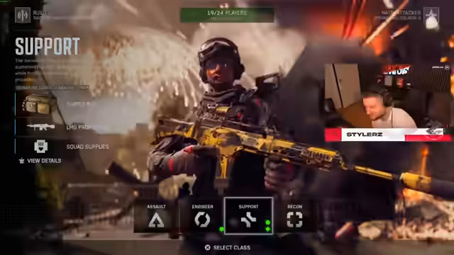 05:36:46Der Streamer eröffnet den Live-Stream und weist sofort auf die verfügbaren Drops und eine laufende Verlosung für Battlefield 6 hin. Während des Spiels wird nach dem Rush-Modus gesucht, und es folgen kurze Erwähnungen der Kampagne sowie des aktuellen Fußballspiels zwischen Deutschland und Luxemburg, wobei ein Elfmeter in der 20. Minute thematisiert wird. Der Streamer erklärt den persistenten Server für Supporter und erwähnt, dass diese kostenlos genutzt werden können, während er die Zuschauer auffordert, die Drops abzuholen.