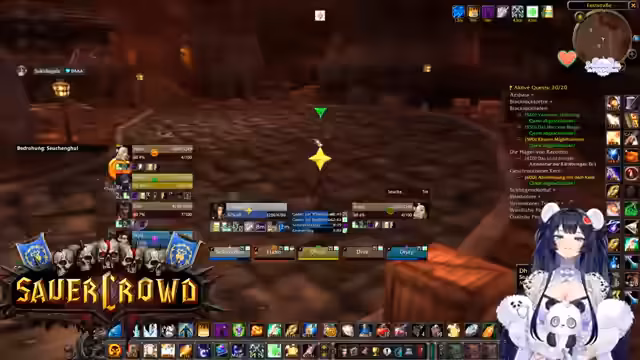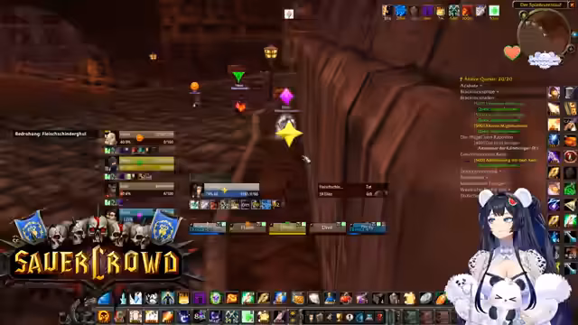 03:57:28Die Gruppe navigiert durch die komplexen Gänge des BRD. Der Streamer zeigt sich verwirrt über den Weg und den Ablauf des Runs, was zu Diskussionen über die verbleibenden Ziele führt. Es wird über verschiedene Quests gesprochen, wie die 'Escort-Quest', die als gefährlich eingestuft wird, und der Fortschritt bei der Sammlung von Quest-Items. Auch die Jagd nach spezifischen Drops für den Jäger-Pet und das Farmen von Rezepten für die Verzauberungskunst werden thematisiert. Die mangelnde Orientierung führt dazu, dass Pfade und Mobs mehrmals erwähnt werden, bevor eine Entscheidung getroffen wird.