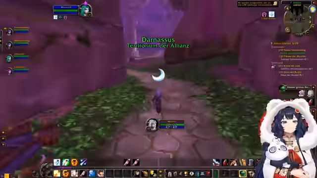05:15:37Nachdem Bärenformen-Quests für Druiden abgeschlossen wurden, bereitet sich die Gruppe auf den Wechsel zur Dunkelküste vor. Dabei werden Teleportrouten via Portale diskutiert und letzte Quests in der aktuellen Zone abgegeben. Handwerker stellen neue Ausrüstung her, darunter verzauberte Stäbe und Taschen, während über Add-Ons und UI-Einstellungen gesprochen wird. Einige Mitglieder testen bereits den Sprung ins neue Gebiet.