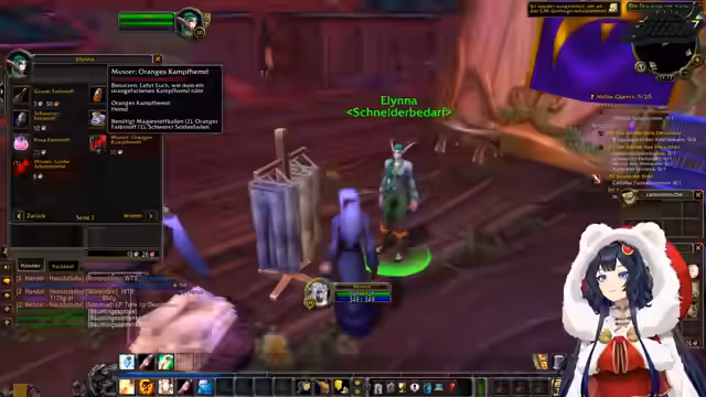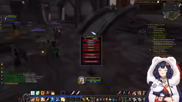 02:56:51Die Spielergruppe diskutiert den Fortschritt der aktuellen Quest-Reihe und plant die nächsten Schritte. Es werden Fragen zur Questannahme gestellt, insbesondere bezüglich der 'Relikte des Erwachens'. Technische Probleme mit Disconnects und Addons werden kurz angesprochen. Ein Fokus liegt auf der Koordination, um gemeinsam eine höhlenbasierte Quest anzugehen. Charaktere werden für den bevorstehenden Kampf vorbereitet, einschließlich der Ausrüstung mit Heiltränken und der Optimierung der Benutzeroberfläche für besseres Kampfmonitoring.