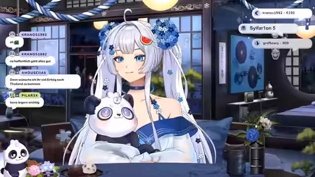00:17:25Der Stream beginnt mit einer mythologischen Erzählung, in der Amaterasu Omi, eine Gottheit, beschließt, in die Menschenwelt herabzusteigen, um die Gefühle der Sterblichen zu erfahren. Ihr Freund, ein Panda, findet ein schwaches Licht in einer Wassermelone. Nachdem Amaterasu dem Licht einen Teil ihrer Kraft leiht, verwandelt es sich in ein himmlisches Wesen mit Pandaohren. Sie benennt das Wesen Suki und schickt es in die Welt der Sterblichen, damit es dort lernt, wieder zu strahlen.