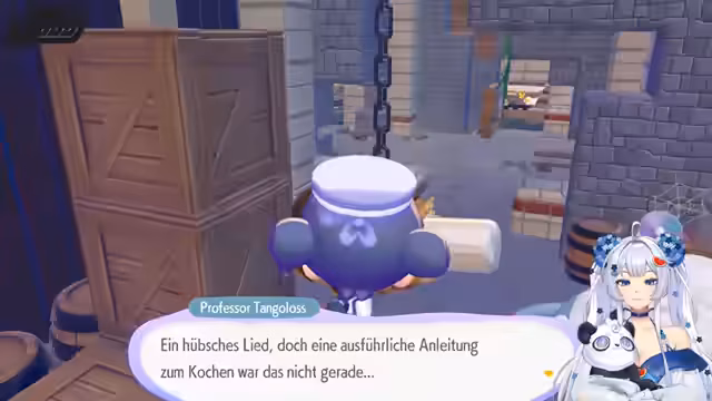 13:45:20Die Streamer hört einen Hilferuf aus einem Fass. Nachdem sie den Inhalt des Fasses inspiziert hat, stellt sie fest, dass sich darin ein Pokémon befindet. Das Pokémon, das ein guter Koch ist, steckte versehentlich fest, als es nach Zutaten für seine Speisen suchte. Die Streamer versucht, die Kette des Fasses zu zerstören, stellt aber fest, dass ihre Kraft dafür nicht ausreicht. Sie erhält den Rat, ein Rezept zu befolgen, um ihre Kraft zu verstärken.
