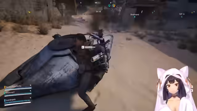 16:44:08Ein Feind wird gesichtet und es kommt zu einem Kampf auf einem Dach. Die Spieler suchen nach einem 'Surveyor', einem Objekt, das als Ball mit einem Blumenstrahl beschrieben wird und viel HP besitzt. Es wird erwähnt, dass der Surveyor 'schlafen' kann, was als Vorteil genutzt wird. Ein 'Surveyor Vault' und ein 'Toaster' werden gefunden. Die Spieler diskutieren über seltene Drops und die Notwendigkeit, das Inventar zu leeren. Ein weiterer Airdrop wird angefordert, und Munition wird ausgetauscht. Ein 'Hovering' Objekt wird gesichtet, das möglicherweise verbuggt ist. Die Spieler beschließen, nach Hause zu gehen, stellen aber fest, dass sie keinen Schlüssel für die Station haben. Es kommt zu einem weiteren Kampf, bei dem die Spieler entscheiden, ob sie die Gegner erschießen oder ziehen lassen sollen. Die Suche nach 'Spiders' und 'Toastern' geht weiter, und es wird über Stash-Upgrades gesprochen.