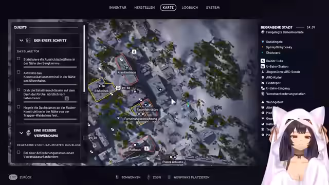 12:18:13Eine internationale Team-Bildung findet statt, als ein Spieler namens IPN der Gruppe beitritt. Die Kommunikation wechselt zwischen Deutsch und Englisch, um alle Teammitglieder einzubeziehen. IPN berichtet, gerade aus L.A. gekommen zu sein und das Spiel erst kürzlich begonnen zu haben. Die Gruppe plant, gemeinsam Oliven zu suchen, die ein Spieler für eine Quest benötigt. Ein anderes Teammitglied bietet an, ein Katzenbett zu bringen, was zu einer humorvollen Interaktion führt. Die Spieler diskutieren über bevorzugte Waffen und die Herausforderungen eines vollen Inventars. Sie beschließen, zum 'Blue Gate' zu gehen, um die benötigten Oliven zu finden und das Spiel gemeinsam fortzusetzen, wobei der Fokus auf Kooperation und Item-Beschaffung liegt.