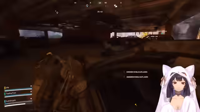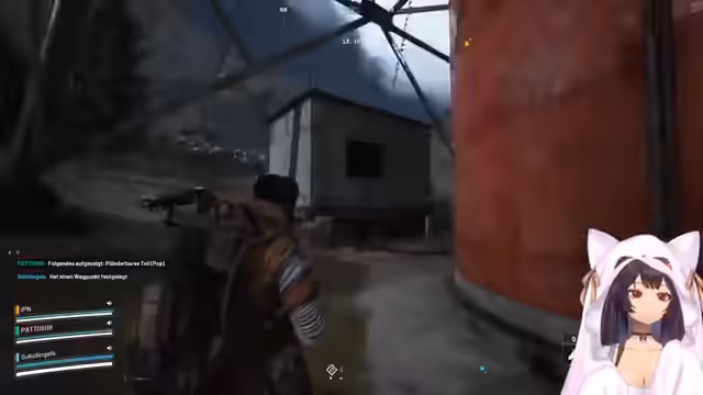 09:55:14Die Spieler sind in einen intensiven Kampf verwickelt, nachdem Gegner an ihrem Eingang aufgetaucht sind. Ein Spieler wird gestunnt, während ein anderer Gegner nahe herankommt. Eine Markiergranate wird eingesetzt, um mindestens einen Feind zu lokalisieren. Trotz eines Schildbruchs und erheblichen Schadens versuchen sie, sich zu heilen und die Gegner strategisch zu bekämpfen. Die Situation eskaliert, als eine Drohne gerufen wird und weitere Gegner auftauchen. Mit knapper Munition und der Erkenntnis, dass ein aussichtsloser Kampf droht, beschließen sie, die Flucht anzutreten. Sie nutzen eine Rauchgranate, um ihren Rückzug zu decken und entkommen durch einen nahegelegenen Ausgang, während sie wertvolle Beute sichern.