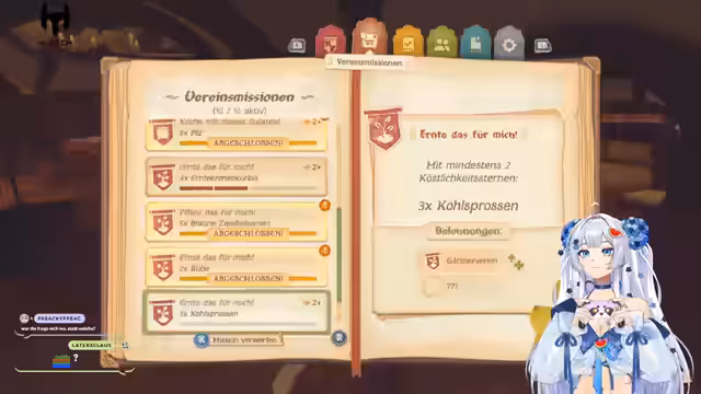 09:18:20Die Geschichte vom geretteten Stofftier Muma wird beendet und der Fokus wieder auf das alltägliche Dorfleben zurückverlegt. Suki muss nun diverse Quests abschließen und Ressourcen managen. Sie rennt durch das Dorf, um Ernteprodukte wie Kürbisse und Zwiebeln abzugeben und stellt dabei fest, dass ihr für Beet-Bau extra Geld bezahlen muss, während andere direkt am Boden pflanzen können. Dies unterstreicht die Notwendigkeit strategischen Handelns und die wirtschaftlichen Herausforderungen im Spiel. Der Tag neigt sich dem Ende zu und sie geht schlafen.