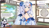 00:17:07Der Stream beginnt mit einer mythischen Erzählung. Amaterasu, die Göttin des Himmels, wünscht sich, die Welt der Sterblichen kennenzulernen. Ihr tierisches Gefolge reagiert, bis auf einen Panda, der bei einem Bambus beschäftigt ist. Als in einer Wassermelone ein schwaches Licht erlischt, findet der Panda es und bringt es zu Amaterasu. Sie gibt dem Licht einen Teil ihrer Kraft und es verwandelt sich in ein himmlisches Wesen mit Panda-Ohren, das sie Suki nennt.
