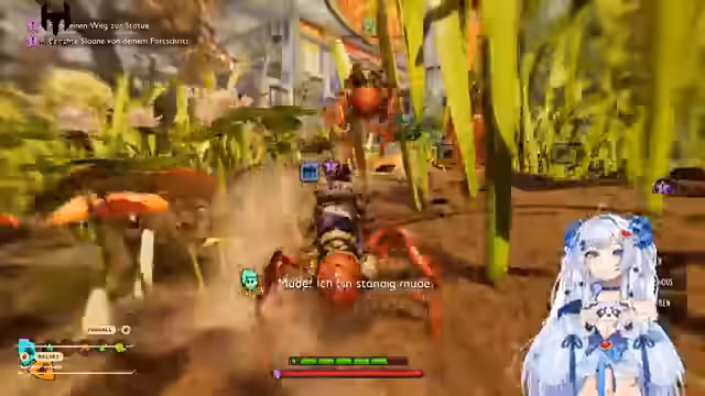 01:18:41Das Paar kämpft gegen mehrere Monster, darunter eine große Gottesanbeterin und mehrere Wollspinnen. Der Streamer kämpft fast allein, da sein Partner in der Spielwelt nicht auf der Karte sichtbar ist. Ein großes Problem ist der Verlust des Rucksacks, der den Verlust wichtiger Gegenstände bedeutet. Die Kämpfe gestalten sich schwierig, und der Streamer frustriert über die mangelnde Hilfe und seine eigene, nicht sehr effektive Ausrüstung.