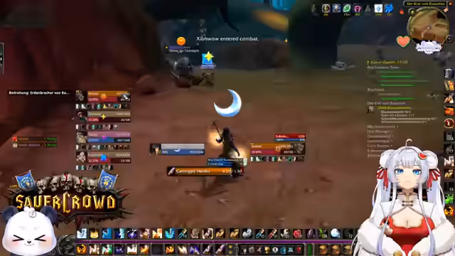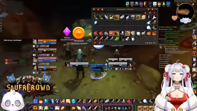 01:20:05Während des Vorbereitens auf den Dungeon teilt der Streamer wichtige Gameplay-Tipps mit der Community. Er empfiehlt den Kauf von Schneebällen, um Fallschaden zu negieren, und erwähnt Buffs, die man durch Tanzen in Sturmwind erhalten kann. Zudem geht er auf die Sekundärtalente ein, die ab Level 40 verfügbar sind. Beim anschließenden Gang in den 'Stock Aids' Dungeon stellt er die Taktik vor und lobt die Effizienz der Gruppe, die zügig die Gegner und den ersten Boss besiegt, wobei wichtige Items wie Kopftücher gelootet werden.