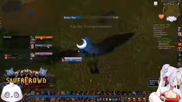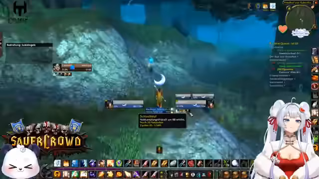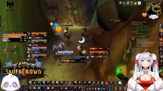 14:11:24Die Streamer steigen in die Kloster-Dungeons ein, die als verrückt und voll beschrieben werden. Es werden die vier Instanzen direkt nebeneinander erwähnt, die gute Beute liefern. Während eines Kampfes in der Krypta kommt es zu technischen Problemen, wie dem Verlust von Mana alle 10 Sekunden und einem Stun-Effekt. Es wird die Schwierigkeit betont, allein in Dungeons wie dem Schlingendorntal zu questen, was gruselig ist. Der Streamer erwähnt auch, dass die Wartezeiten auf Instanzen manchmal über eine Stunde betragen können.