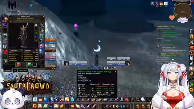 13:19:37Die Streamer sind tief ins Gameplay eingetaucht und sprechen über die Fortschritte ihrer Charaktere. Es wird über den Kauf und die Erneuerung von Blitzheilung gesprochen, um mit einer permanenten Krankheit fertigzuwerden, die den Angriffstempo um 25% reduziert. Beim Mount-Fortschritt wird die hohe Kosten von 190 Gold fürs Reiten und den Mount selbst erwähnt. Es wird auch diskutiert, dass der Ruf bei den Gnomen den Preis senken kann und die Suche nach dem Level 90 Mount beginnt. Sie planen, nach Goldhain zu fliegen, um Zeit zu sparen und um eine Priester-Kreis-Quest abzuschließen.