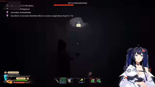 04:08:53Der Streamer startet eine gezielte Mission, um in einer Ameisenhöhle Eier zu sammeln. Diese Eier sind offenbar für wichtige Crafting-Rezepte oder Upgrades notwendig. Die Erkundung der Höhle ist gefährlich und erfordert vorsichtiges Vorgehen, da sie von Kriegerameisen bewacht wird und zahlreiche Hindernisse wie Leitern und Stromkabel enthält. Nachdem sie die Eier gefunden haben, stoßen sie auf den Eingang eines vermeintlichen Science-Labors, was neue Ziele und potenzielle Abenteuer für zukünftige Streams andeutet.