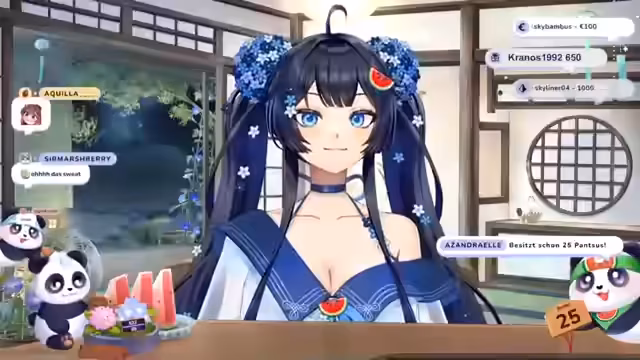 00:17:13Der Stream beginnt mit einer Mythologie-Geschichte, in der Amaterasu Omi, eine Göttin, von einem Panda entdeckt wird. Der Panda findet ein schwaches Licht in einer Wassermelone, das vor dem Erlöschen steht. Amaterasu beschließt, dem Licht ihre Kraft zu leihen und es in die menschliche Welt zu senden, um dort zu erstrahlen. Das Licht wird in ein himmlisches Wesen mit langen weißen Haaren und Panda-Ohren verwandelt und erhält den Namen Suki. Sie wird beauftragt, die Augen und Ohren der Göttin in der sterblichen Welt zu sein und den Menschen zu helfen.