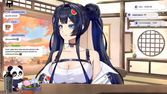 00:17:24Der Stream beginnt mit einer märchenhaften Erzählung: Amaterasu Omikami, eine himmlische Gottheit, sehnt sich nach den Empfindungen der Sterblichen und ruft ihr tierisches Gefolge herbei. Ein einziger Panda überhört jedoch ihren Ruf, während er genüsslich Bambus isst. In einer Wassermelone entdeckt er ein kleines, erlöschendes Licht. Aus Mitgefühl sucht der Panda Amaterasu auf, die das Licht als Geschenk für die Menschenwelt stärkt. Sie verwandelt das Licht in ein himmlisches Wesen mit Panda-Ohren und langen weißen Haaren, gibt ihm den Namen Suki und schickt es durch ein Tor in die Welt der Sterblichen, um dort wieder zu erstrahlen und als Licht in der Dunkelheit zu dienen. Dieser fantastische Prolog leitet in den Stream über.