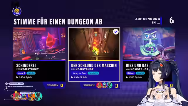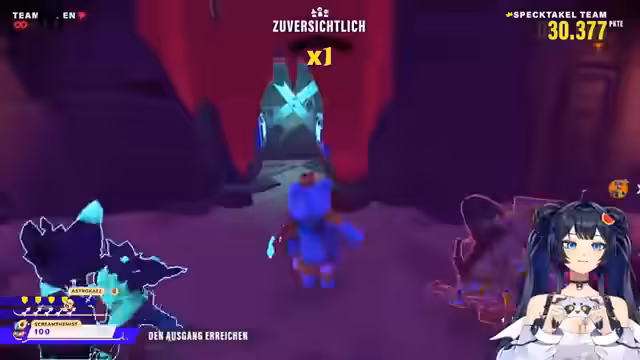 01:34:11Die Gruppe stößt auf verschiedene Herausforderungen im Level, darunter Fallstricke, Plattform-Sprünge und ein Rätsel. Einige Teammitglieder sterben wiederholt durch Stürze, was den Punktemultiplikator reduziert. Die Streamerin weist auf die Mechanik hin, dass man durch das Vermeiden von Todesfällen mehr Punkte erhält. Später müssen sie ein Rätsel lösen, bei dem es um die Platzierung von Gegenständen wie Brot und einem Totenkopfbrunnen geht. Sie überlegen, welches Auge (ein orangenes oder ein gelbes) korrekt ist. Die Kommunikation ist manchmal schwierig, da die Spieler unterschiedliche Wege gehen, aber sie arbeiten daran, sich wieder zu finden und gemeinsam den Bossgegner zu besiegen.