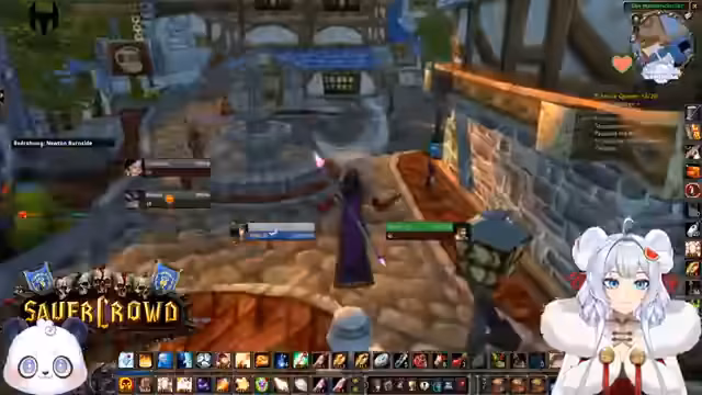 02:51:24Ein Streitgespräch entsteht, als der Streamer einem Charakter unter Level 10 helfen möchte, der Probleme mit der Prinzessin in der Todesgrube hat. Er erklärt, dass es nach den Regeln nicht erlaubt ist, Gildenfremden direkt helfen zu lassen. Trotzdem entschließt er sich, dem Spieler im Alleingang zu helfen und betont die Pflicht, andere Spieler in WoW zu unterstützen, besonders für eine Priesterin.