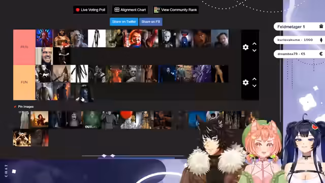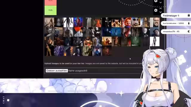 00:31:23Die Streamerin erkundigt sich bei ihren Gästen nach deren Einstellung zu Horror. Suki liebt Horrorfilme, ist aber bei Horrorspielen ein "Schisser". Dies führt zur Erwähnung von Silent Hill F, das Suki als Teil eines Charity-Streams spielen wird, obwohl sie es freiwillig nicht spielen würde. Kenichi teilt seine Erfahrungen mit Silent Hill F und erwähnt, dass es einige Jumpscares gab, die ihm das Herz in die Hose rutschen ließen. Die Diskussion erweitert sich auf die Zuschauer, die im Chat ihre Meinungen zum Horror-Genre teilen sollen. Es wird festgestellt, dass viele Zuschauer Fans des Horror-Genres sind, während einige bei Horror-Spielen wegschalten müssen. Die Vorbereitung der "Run or Fun"-Tierlist wird fortgesetzt, wobei die Streamerin die Regeln des Spiels noch einmal erläutert, um Missverständnisse zu vermeiden.