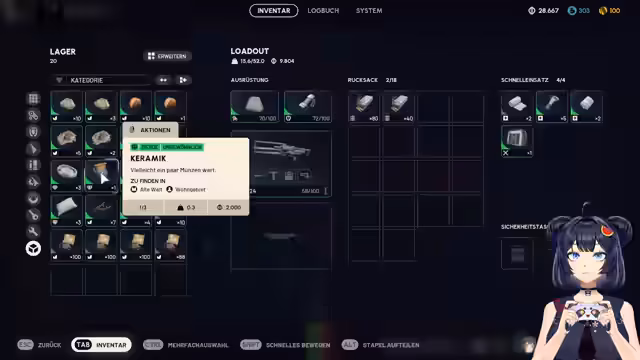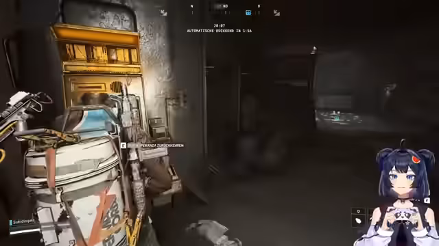 08:51:04Die Gruppe bereitet sich auf eine neue Mission vor, wobei ein Spieler scherzhaft als „Köder“ bezeichnet wird. Es wird über den Waffentausch und die Verteilung von Ausrüstung diskutiert, wobei die Kettler-Waffe erneut zum Thema wird. Die Spieler planen, zu den Schubdüsen zu gelangen und einen Turm zu erkunden, in der Hoffnung, dort wertvolle Beute zu finden. Die Mechanik des Nahkampfs mit dem Hammer wird als effektive Strategie gegen Gegner erwähnt. Es wird auch über das Auffinden von seltenen Gegenständen wie dem „Rusted Gear“ und Energiestäben gesprochen, die für das Crafting wichtig sind. Die Gruppe muss vorsichtig vorgehen, da Spinnen und andere Gegner in den Räumen lauern.
