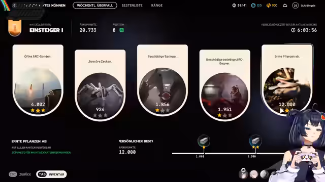 09:58:54Nach einer intensiven Runde, in der die Spieler viele Proben gesammelt haben, wird die Extraktion eingeleitet. Sie haben insgesamt 4.000 Punkte erreicht, was bei Nacht 8.000 Punkte gewesen wären. Suki ist in der Rangliste auf Platz 6 aufgestiegen, während ein anderer Spieler auf Platz 30 liegt. Es wird diskutiert, dass die Nachtkarte bald aktiv sein könnte, was weitere Möglichkeiten zum Sammeln von Punkten bietet. Die Spieler planen, weitere kostenlose Runs zu machen, um ihre Ränge zu verbessern und Belohnungen wie Emotes und Kosmetika zu erhalten. Es wird auch über die Erweiterung des Lagers gesprochen, um mehr Gegenstände aufnehmen zu können.