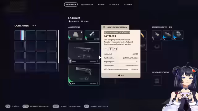 13:27:45Die Spieler erkunden eine Karte und sammeln verschiedene Gegenstände. Es gibt Diskussionen über Waffen, darunter ein beschädigtes Tempest und eine als sehr effektiv empfundene Waffe mit hoher Feuerkraft. Eine Debatte über die Kosten der Waffenreparatur entsteht, insbesondere für Gegenstände über der grünen Qualität. Die Spieler erwägen, die Ausrüstung zu verbessern, anstatt sie zu reparieren, aufgrund der niedrigen Upgrade-Kosten. Es wird über verschiedene Waffentypen gesprochen, darunter ein Maschinengewehr ein Typ, der als unpraktisch erachtet wird.