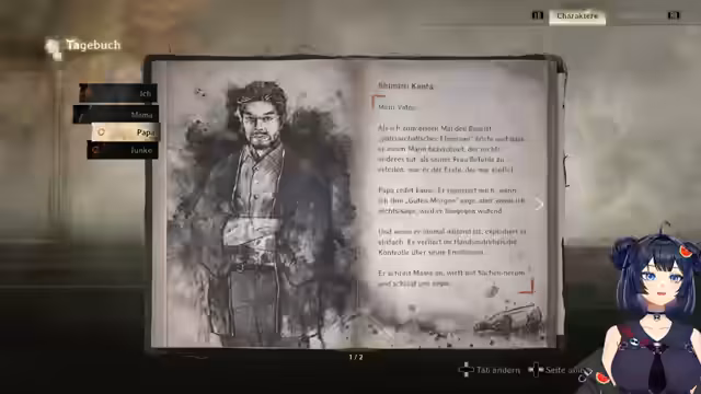 02:44:40Der Streamer taucht tief in die psychologische Komplexität der Familie ein, indem er die schwierige Beziehung zum Vater thematisiert. Der Vater wird als eine Person beschrieben, die kaum kommuniziert, bei Nichtbeachtung wütend wird und unkontrolliert explodiert, indem er schreit, Gegenstände wirft und sogar handgreiflich wird. Diese häusliche Seite steht im starken Kontrast zu seinem ruhigen und gelassenen Auftreten in der Öffentlichkeit, was die Protagonistin dazu bringt, sich lieber entführen zu lassen, als eine weitere Sekunde in seinem Haus zu verbringen. Parallel dazu wird die ältere Schwester als eine wunderschöne, nette und fähige Person beschrieben, auf die man sich immer verlassen kann und die bis zu ihrer Heirat eine konstante Stütze war. Die Protagonistin, Shimizu Hinako, beschreibt sich selbst als außergewöhnlich groß für ihr Alter und sportlich, da sie als Kind viel mit Jungen spielte. Sie gibt zu, manchmal stur zu sein und Entscheidungen anderer nicht gerne zu akzeptieren, selbst wenn sie richtig sind, was oft zu Reue führt.