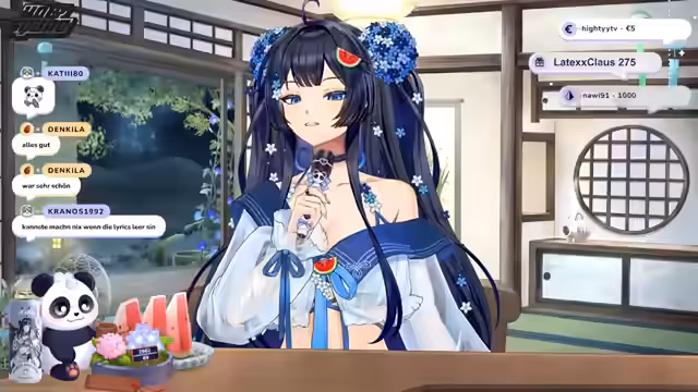 00:17:22Der Stream beginnt mit einer animierten Geschichte, in der die Sonnengöttin Amaterasu ihr Licht in die Welt der Sterblichen senden möchte. Ein Panda findet ein erlöschendes Licht in einer Wassermelone und bringt es zu Amaterasu, die ihm rät, es stattdessen in die Menschenwelt zu schicken. Sie verleiht dem Licht ihre Kraft und es verwandelt sich in ein himmlisches Wesen mit Panda-Ohren. Dieses Wesen erhält den Namen Suki und wird mit der Aufgabe betraut, in der Welt der Sterblichen wieder zu strahlen, deren Hüterin zu sein und ihr Licht in der Dunkelheit zu sein.