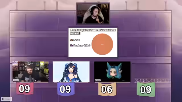 02:29:08Der Stream startet mit einem Quiz, bei dem Suki und Nana gegen Katze antreten. Die erste Frage nach einem Spiel mit Sellout-Streams löst eine anhaltende Debatte aus. Suki und Nana tippen auf Minecraft, während Katze auf ein anderes Spiel A wählt. Suki streitet vehement ab, dass es Minecraft ist, und beschreibt ein Ereignis, bei dem er sein Schiff in Sea of Thieves für jede 50-Euro-Spenden versenken musste, um eine Challenge zu sabotieren. Die Auflösung erfolgt später, wobei die Quizrunde bei einem engen Stehen endet.