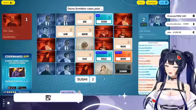 01:34:37Es wird diskutiert, welche Gegenstände im Spiel als Essen gelten und welche nicht. Dabei werden Nuss und Zopf als sichere Optionen genannt, während Nerz, Bär und Maus eher unkonventionell sind. Die Gruppe überlegt, ob Zimtrollen oder Brotstückchen mit Käse und Maus als Mahlzeit durchgehen würden. Weiterhin wird der Begriff 'Luxus' im Spiel analysiert. Genannte Beispiele sind Kohl, Limousine, Nerz, Krone, Yachtanker und eine Privatbahn. Es herrscht Uneinigkeit darüber, warum Nerz mit Luxus assoziiert wird. Die Gruppe spekuliert über die Bedeutung verschiedener Begriffe im Spielkontext und versucht, diese miteinander zu verbinden. Dabei werden auch mathematische Überlegungen angestellt, um die Wahrscheinlichkeit bestimmter Ereignisse zu bestimmen. Die Diskussion dreht sich um die Frage, welche Begriffe am besten zu 'Essen' passen, wobei Menü und Kehle zur Debatte stehen. Am Ende entscheidet man sich jedoch um und wählt Osten und Rolle, was sich als Fehler herausstellt. Es wird vermutet, dass Suki, eine andere Spielerin, den Nerz nicht mit Luxus assoziiert hat oder die Limousine übersehen hat.