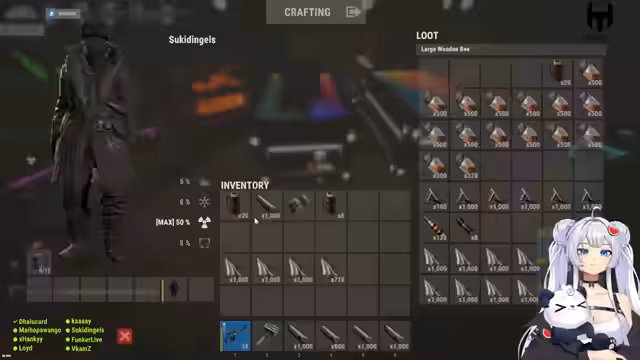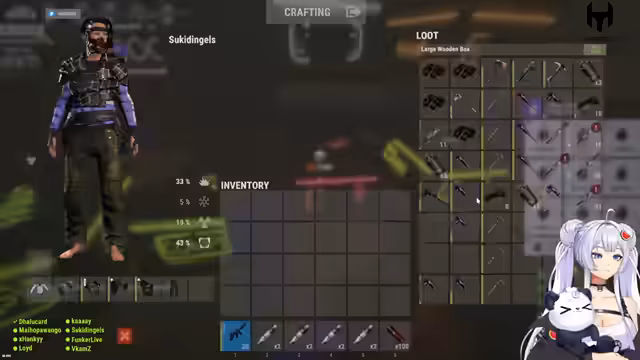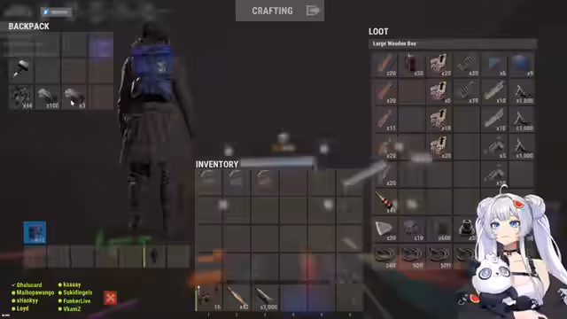 00:25:00Das Team widmet sich zwischen 1500 und 2500 Uhr dem Ausbau der Basis, der Verteilung von Bettplätzen und der Sicherung von Ressourcen wie Metallen und Waffen. Es folgen Absprachen zur Camper-Verschiebung und zum Transport von Ausrüstung, während gleichzeitig die Vorbereitungen für bevorstehende Events und mögliche Raid-Abwehr intensiviert werden. Die Kommunikation zeigt eine klare Aufgabenteilung, um die Einsatzbereitschaft für Kämpfe zu gewährleisten.
