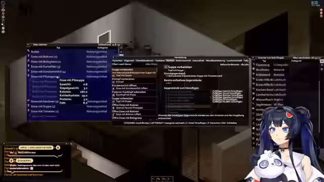 06:54:13Der Streamer bereitet verschiedene Nahrungsmittel zu, darunter Suppe und Pasta. Dabei experimentiert er mit Zutaten wie Pilzen, Tomatenmark und Butter. Er stellt fest, dass die Zubereitung von Mahlzeiten notwendig ist, um den Hungerzustand im Spiel zu regulieren. Gleichzeitig diskutiert er über die Effektivität verschiedener Kochmethoden und die Lagerung von Lebensmitteln, wobei er entscheidet, den Generator bei Abwesenheit auszuschalten, um Ressourcen zu sparen.