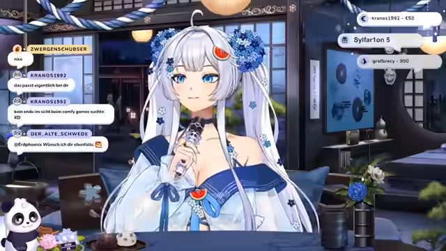01:55:01Der Stream verlagerte sich zur musikalischen Unterhaltung. Der Streamer nahm verschiedene Songwünsche aus dem Chat entgegen und verschiedene Lieder zu singen. Es wurden bekannte Titel wie 'I see fire', 'Zombie' und 'Can you paint with all the colors of the wind' angesprochen. Die Lieder wurden live gesungen und auch kritisch besprochen, insbesondere was die passenden Instrumentalversionen betrifft. Der Streamer betonte, dass Singen ohne Voice Changer und mit eigener Stimme erfolgte.
