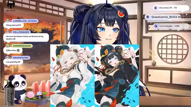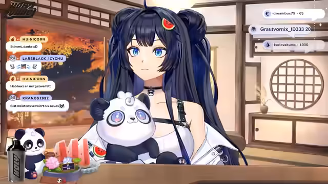 00:17:07Der Stream beginnt mit einer erzählerischen Einführung in die mythologische Figur Amaterasu Omi, die ihre tierischen Gefolgsleute in das Reich der Sterblichen entsenden möchte. Ein Panda entdeckt dabei ein schwaches Licht in einer Wassermelone, das zu erlöschen droht. Amaterasu leiht diesem Licht ihre Kraft, woraufhin es sich in ein himmlisches Wesen mit langen, weißen Haaren und Panda-Ohren verwandelt. Dieses Wesen erhält den Namen Sugi und wird mit der Aufgabe in die Menschenwelt geschickt, dort zu lernen, wieder zu strahlen, und den Sterblichen als Licht und Quelle der Liebe zu dienen. Sugi nimmt ihren Mut zusammen und betritt die Welt der Sterblichen, wo sie nach anfänglicher Dunkelheit einen strahlenden blauen Himmel erblickt.