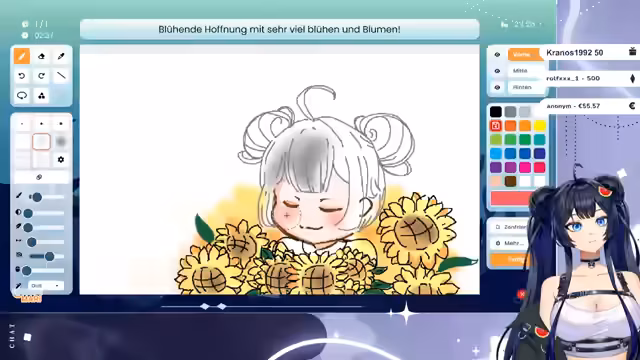 00:35:23Die Kolomari-Runde beginnt offiziell, und die Teilnehmer sind aufgefordert, das Thema 'Blühende Hoffnung' kreativ umzusetzen. Obwohl der Prompt 'Hoffnung' lautet, gibt es bereits erste Abweichungen und individuelle Interpretationen, was für eine vielfältige und unterhaltsame Runde sorgt. Die Streamer diskutieren über die Herausforderungen des Zeichnens mit der Maus und die Nutzung der verschiedenen Funktionen des Tools, wie Ebenen und Zeichenmodi. Es werden Tipps und Tricks ausgetauscht, um die kreativen Ideen bestmöglich umzusetzen. Die Zeitbegrenzung von einer Stunde für die Zeichnungen wird als sowohl motivierend als auch stressig empfunden, da die Minuten schnell vergehen. Trotz des Drucks bleibt die Stimmung locker und humorvoll, und die Teilnehmer genießen den kreativen Prozess. Es wird auch die Möglichkeit besprochen, die fertigen Bilder für Social Media zu speichern und zu teilen, um die Reichweite der Spendenaktion zu erhöhen und die Kunstwerke der Community zu präsentieren. Die Interaktion und der Austausch unter den Streamern und mit dem Chat zeigen, wie sehr die Community das gemeinsame Erlebnis schätzt.