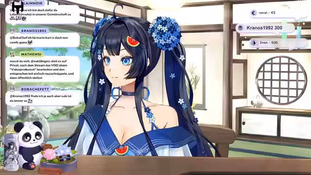 00:17:07Der Stream startet mit einer fiktiven Erzählung über Amaterasu Omi und einen Panda, der ein schwaches Licht in einer Wassermolke findet. Anschließend begrüßt der Streamer die Community mit einer langen Liste von Usernamen. Es folgen persönliche Anmerkungen zur Streamdauer, zum Wetter, zum Erhalt einer Hose als Fanart und zur Nutzung von Creator-Codes. Der Streamer zeigt auch eine Ninja Slushie-Maschine, die Hufu enthält, und vergischt das Herunterladen des Spiels Scum, während er mit Suki über zukünftige Pläne spricht.