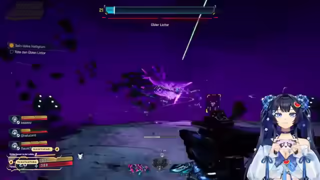 01:54:54Es wird überlegt, ob ein Pfeil in der Nähe etwas mit Moxys Casino zu tun hat und ob es einen Deathcounter für Suki gibt. Ein Spieler hatte einen Disconnect und es wird überlegt, was das bedeutet. Ein Spieler ist Level 21 und fragt, ob das Schild Level 21 ist. Es wird überlegt, ob man heute noch Level 30 wird, um sich das Schild nochmal auf Level 30 zu fahren. Es wird gefragt, ob Suki Left 4 Dead spielen würde. Ein Spieler findet Left 4 Dead 1 besser als 2. Ein Spieler findet einen Geheimgang. Es wird über SMGs diskutiert. Ein Spieler hat Fuji Wanderstäbe nach Deutschland geschickt. Es wird über Survival-Games diskutiert, insbesondere Guardians of the Wild Sky. Ein Spieler Game ist gecrasht. Es wird über Pistolen diskutiert und ein Spieler hat seine Pistole verloren. Ein Spieler versucht seinen Stream anzumachen. Es wird über OBS-Spezialisten diskutiert. Es wird überlegt, ob Flauschi pro Spieler noch einen Wechsel-Gamer einstellen könnte. Es wird über Mods diskutiert, die Knöpfe drücken müssen. Es wird gefragt, was Moxies ist. Es wird über den Waffen-Gamble-Automaten diskutiert. Es wird über Borderlands 3 diskutiert und wer Zane ist. Ein Spieler sucht den Gamble-Automaten und klaut Geld von den Arbeitern. Es wird befürchtet, dass es den Gamble-Automaten nicht gibt. Es wird über Claptrap diskutiert. Es wird überlegt, ob Moxie bei jedem Teil dabei war. Es wird über ein Haustier diskutiert, das Sofio heißt. Es wird über Zane diskutiert. Es wird überlegt, ob es ein Hentai-Tentake-Fiech ist. Es wird überlegt, ob es eine gute Idee ist, die beiden Stücke aufzustemmen. Es wird über braune Lego-Steine diskutiert. Es wird überlegt, dass jedes Borderlands-Gebiet gleich aussieht. Es wird überlegt, ob man schönere Gebiete einbauen könnte. Es wird über Borderlands 3 diskutiert. Ein Spieler kann sich an nichts erinnern. Es wird über einen Joke diskutiert. Ein Spieler war am träumen. Ein Spieler braucht eine neue Waffe. Es wird über Borderlands 4 diskutiert. Es wird über Tiny Tina diskutiert. Es wird über Arschgaul diskutiert.