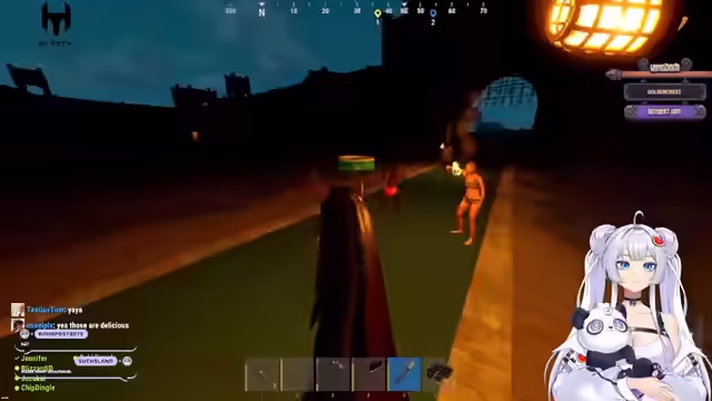 21:08:40Es kommt zu einer Interaktion mit anderen Spielern namens Sana und Tiki, die gefragt werden, was sie im Spiel machen. Sana wird ein Pferd angeboten, was sie jedoch ablehnt, da sie bereits eines hat. Es wird überlegt, ob Sana auch eine Sängerin ist. Der Streamer diskutiert mit Sana über benötigte Ressourcen wie Stoff, Metall und Kloven für das Königreich und bietet an, bei Bedarf auszuhelfen. Nach Sanas Abschied überlegt der Streamer, wo ein bestimmter Gegenstand zu finden ist und äußert den Wunsch nach einer Terrasse. Später trifft der Streamer Sookie und überreicht ihr ein Geschenk. Es wird über Steuern im Spiel gesprochen und Sookie erwähnt, dass sie mehr gebaut hat. Der Streamer baut etwas für Sookie und es wird überlegt, ob sie der Blutkult angehört. Sookie erzählt, dass ihr Pferd gestohlen wurde und der Streamer bietet ihr ein neues an. Es wird ein Haus für Sookie gebaut und eingerichtet, inklusive Küche, Schlafzimmer, Bad und Balkon mit Aussicht auf die Kirchen und den Vulkan. Der Streamer bietet Sookie Leder und einen warmen Pullover für den Aufenthalt in den Bergen an.