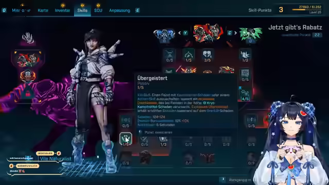 03:34:43Die Streamerin findet die Quest und stellt fest, dass die zugehörige Frau plötzlich da rumsteht, ohne sie zu begrüßen. Es wird überlegt, ob eine Mitspielerin mittlerweile oben hinkommt. Die Streamerin erzählt, dass sie beim Optiker war und ein Rezept für eine Prismenbrille bekommen hat, da sie doppelt sieht, weil sie leicht schielt. Der Augenarzt meinte, die Krankenkasse zahlt das, aber der Optiker sagte, die Brille kostet 800 Euro, da es spezielle Gläser sind. Die Krankenkasse übernimmt nur einen Teil, nämlich 56 Euro. Die Streamerin will sich eigentlich die Augen lasern lassen, aber das würde das Problem des doppelten Sehens nicht lösen, da das Schielen operativ behoben werden müsste. Die Streamerin hat von einer Sirenenfreundin gehört, dass sie etwas entdeckt hat und schwarze Löcher schießen kann. Sie bereitet sich auf eine Reise vor und weiß, dass der Haarrichter kommt. Sie hat eine zielsuchende Granate, die aber kein Ziel findet.