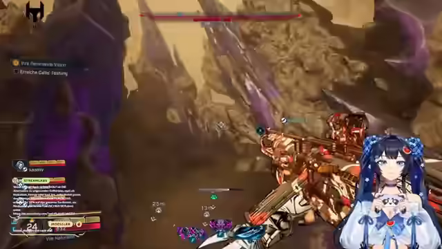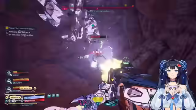 02:32:01Die Gruppe setzt ihre Borderlands-Session fort, wobei anfängliche Verwirrung über Questmarker und das Erreichen bestimmter Bereiche besteht. Es gibt Diskussionen über den Einsatz von Waffen und Munition, während sie sich durch ein Gebiet bewegen, das als 'Schmierwerke' bezeichnet wird. Eine Spielerin äußert Frustration darüber, in einem 'Kackloch' festzustecken. Es wird kurz über andere Spiele gesprochen, darunter 2XKO, ein Leak-Beat-em-up, und Ranked-Spiele in Season 1. Die Spielerin im Grandmaster-Rang erklärt, dass es noch Top 500 gibt. Es gibt Probleme mit Rubberbanding und die Frage nach geeigneten Charts für Anfänger wird aufgeworfen. Die Suche nach Muni und ein SMG mit Elementarschaden wird thematisiert, während sie sich durch ein Gebiet kämpfen, das anfänglich als High-Level-Gebiet eingeschätzt wird, was bedeutet, dass sie sich eine halbe Stunde durchprügeln müssen. Die Spielerin erwähnt, dass sie ihre neue Gravitationsgranate nicht mag, da sie zu lange braucht, bis sie hochgeht.