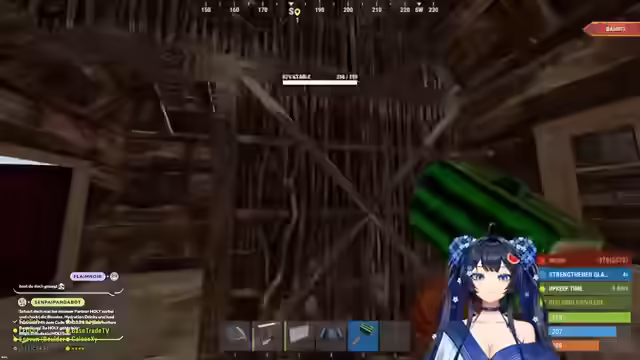 10:59:33Es wird am Innenausbau gearbeitet und überlegt, wie man den Aufzug verbessern kann. Es wird überlegt, ob man eine erfahrene Spielerin (mit 5k Stunden) ins Team aufnehmen soll, aber es ist unsicher, da es bereits spät ist. Es wird Hilfe von einem Admin (Gareth) in Anspruch genommen, um ein Problem mit einem Holzrahmen zu beheben. Es wird überlegt, wie man Lampen platziert und verbindet. Boulder plant, Tarjan zu besuchen, und es wird über ein bevorstehendes Event (Scavenger Hunt) gesprochen. Es wird überlegt, ob man an dem Event teilnehmen soll, obwohl es spät ist. Es wird ein Team für das Event gesucht, wobei die Anforderung ist, dass ein Spieler über 5k Stunden Rust-Erfahrung haben muss und die anderen darunter. Es wird ein Whiskey Sour zubereitet und serviert. Es wird über die neuen Sitze und deren Komfort gesprochen. Es werden Bären in der Nähe gehört. Es werden Betten an Freunde verteilt, damit diese mehr Betten platzieren können.