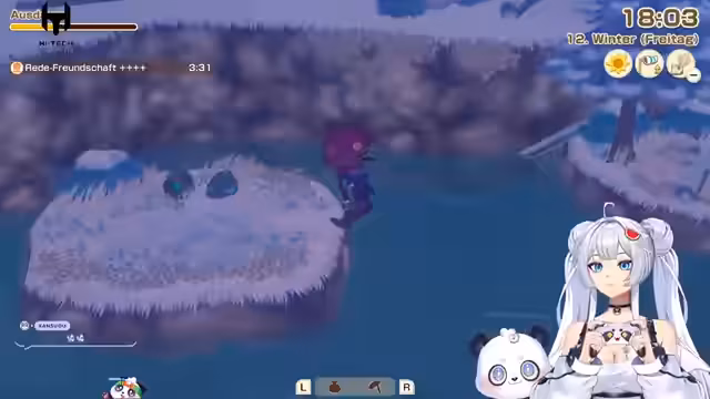 02:03:30Es kommt zu einer Interaktion mit einem Charakter namens Samia, der nach seiner Heimat gefragt wird. Es folgt ein Gespräch mit Derek, bei dem es um Respekt und Reife geht. Derek möchte kochen lernen, um zu zeigen, dass er kein Kind mehr ist und bittet den Chefkoch um Tipps. Suki gibt ihm den Anstoß, sich Mühe zu geben. Es wird überlegt, wen man im Spiel heiraten soll und welche Story am besten gefällt. Es wird erwähnt, dass die schwangere Kuh noch nicht fertig ist. Es wird überlegt, ob man ein AI-Bild machen soll. Es wird überlegt, ob die Apfelbäume ausgezeichnet sein müssen, um Goldäpfel zu erhalten. Es wird der Wunsch nach einem Teleportstein geäußert. Es wird festgestellt, dass am Morgen ein Fest stattfindet. Es wird überlegt, was gekocht werden soll, wobei Aubergine in Betracht gezogen wird. Es wird festgestellt, dass Key ein Kätzchen zur Welt gebracht hat. Es wird überlegt, wie das Kätzchen genannt werden soll. Es wird festgestellt, dass es am Morgen einen Schneesturm geben wird.