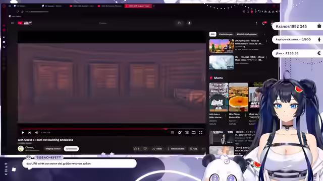 02:39:31Es kommt zu Verwirrungen, da versehentlich der Stream von Chris statt des Streams von Suki geöffnet wird, weil das Thumbnail fälschlicherweise den Suki-Stream anzeigt. Die Kriterien für die Bewertung werden festgelegt: Optik, Gebäude, Logik (ob der Aufbau Sinn ergibt) und Dekoration. Es wird erwähnt, dass das Case Team möglicherweise Minuspunkte erhält. Die Frage nach der musikalischen Untermalung in den Videos wird aufgeworfen, und es wird festgestellt, dass Musik vorhanden ist. Die Streamerin erklärt, dass sie als Jurymitglied für die Bewertung von Bauwerken in einem Spiel fungiert und nur zehn Minuten Zeit hat. Sie äußert Bedenken hinsichtlich der Sinnhaftigkeit einiger Bauwerke und der Platzierung von Elementen wie Flaggen und Dächern.