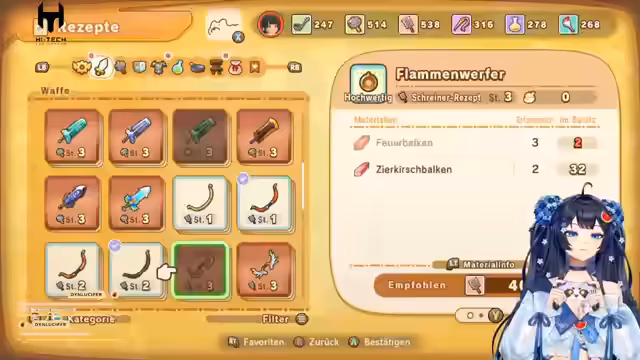 06:39:09Um den legendären Bogen herzustellen, benötigt die Streamerin spezifische Materialien wie edle Klauen und Sirenenhelme. Sie stellt fest, dass ihr Rang im Schmieden noch zu niedrig ist und sie Aufträge erledigen muss, um aufzusteigen. Sie beginnt, Rüstungen herzustellen, um die benötigten Ressourcen zu farmen und den Rang zu verbessern. Gleichzeitig erkundet sie neue Gebiete, um nach selteneren Materialien wie Wasserbalken zu suchen, die für den Bau notwendig sind.