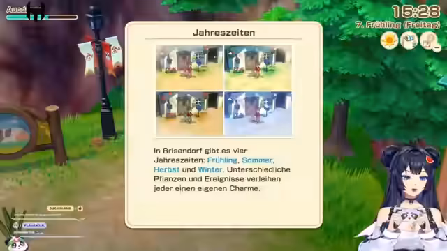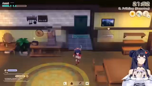 11:06:05Der Streamer geht verschiedene Geschäftsideen und Kooperationen im Dorf an. Eine neue Laden eröffnet, ein 'Glücksladen', der es ermöglicht, Glücksenergie gegen exklusive Gegenstände einzutauschen. Die Mechanik des Basars wird detailliert erklärt: Naturgeister unterstützen den Verkauf, sobald eine Glückleiste gefüllt ist. Parallel dazu werden weitere NPC-Geschäfte vorgestellt, etwa ein Stand für Raumausstattung und eine Tafel für Tierabgaben, was ein reiches soziales und wirtschaftliches Dorfleben widerspiegelt.
