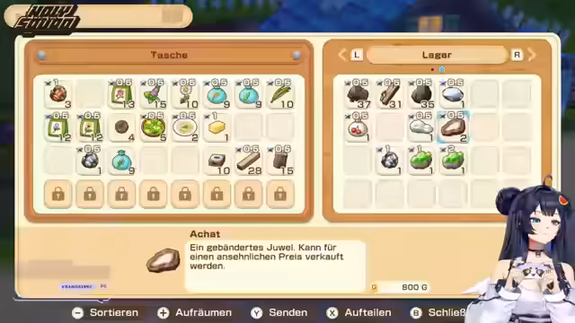 02:29:31Der Stream beginnt mit dem Besuch eines Bazars, der nach langer Zeit wieder stattfindet. Es wird die vorbereitete Verkaufstheke vorgestellt und die Aufgabe als neue Händlerin eingeführt. Die Protagonistin Suki wird vom Dorf begrüßt und ermutigt, ihren Stand mit den anfangs zur Verfügung gestellten Artikeln zu betreiben. Der Fokus liegt darauf, die ersten Verkaufsfähigkeiten zu erlernen und die Aufmerksamkeit potenzieller Kunden durch das Läuten einer Glocke zu gewinnen.